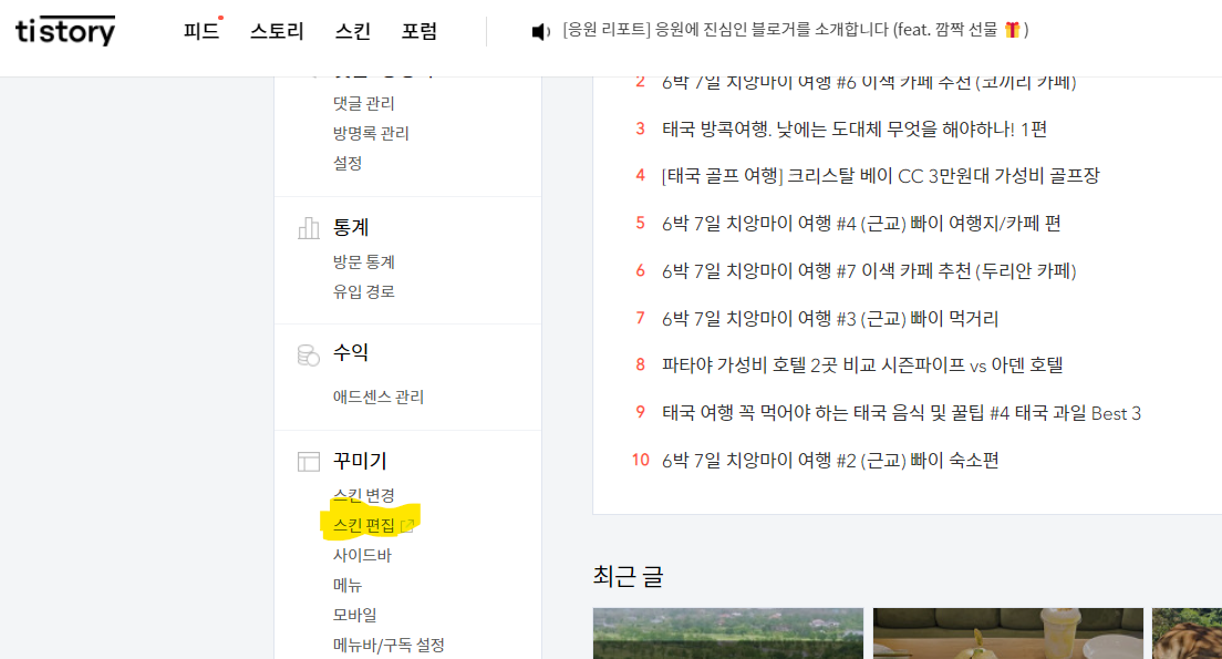 티스토리 whatever스킨 카테고리 메뉴 넣기