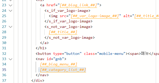 - HTML blog menu 항목에서 Enter 후 '[@##_@category_list_##]' 입력(@는 지우고 사용하셔야 합니다) → 적용