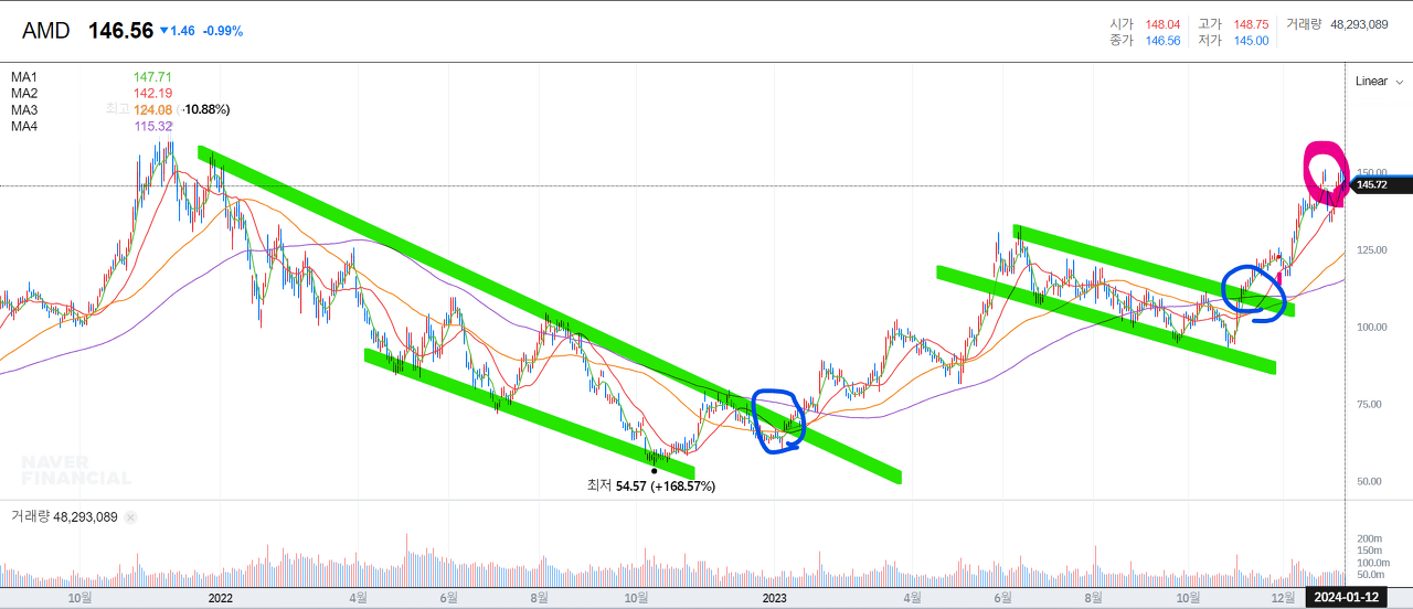 미국 차트 분석 : 반도체 분야 3개사 [AMD, GFS, AVGO]