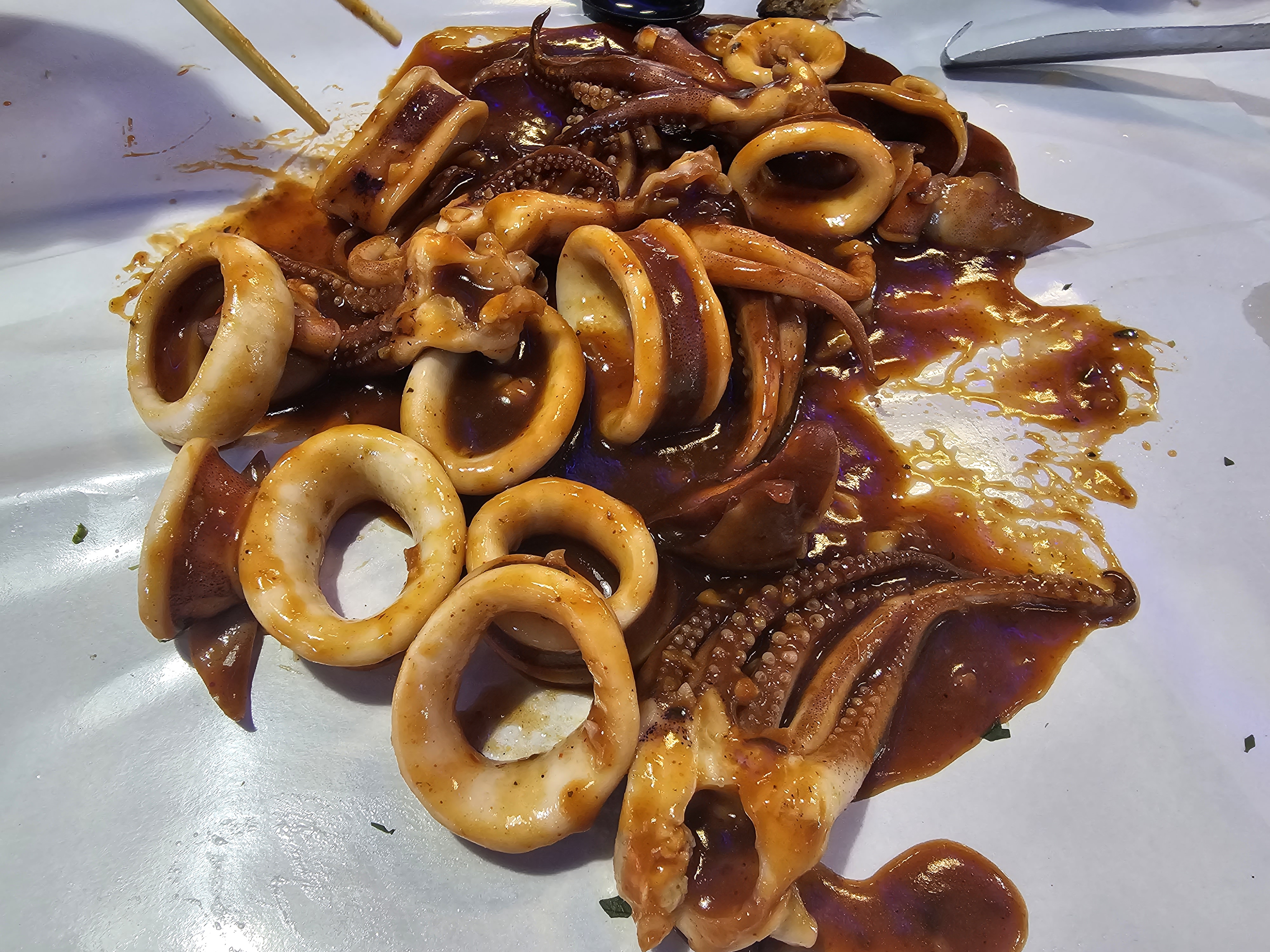 오늘쪽은 이름이 기억이 안나는데, 케찹베이스 소스에 오징어 볶음입니다.