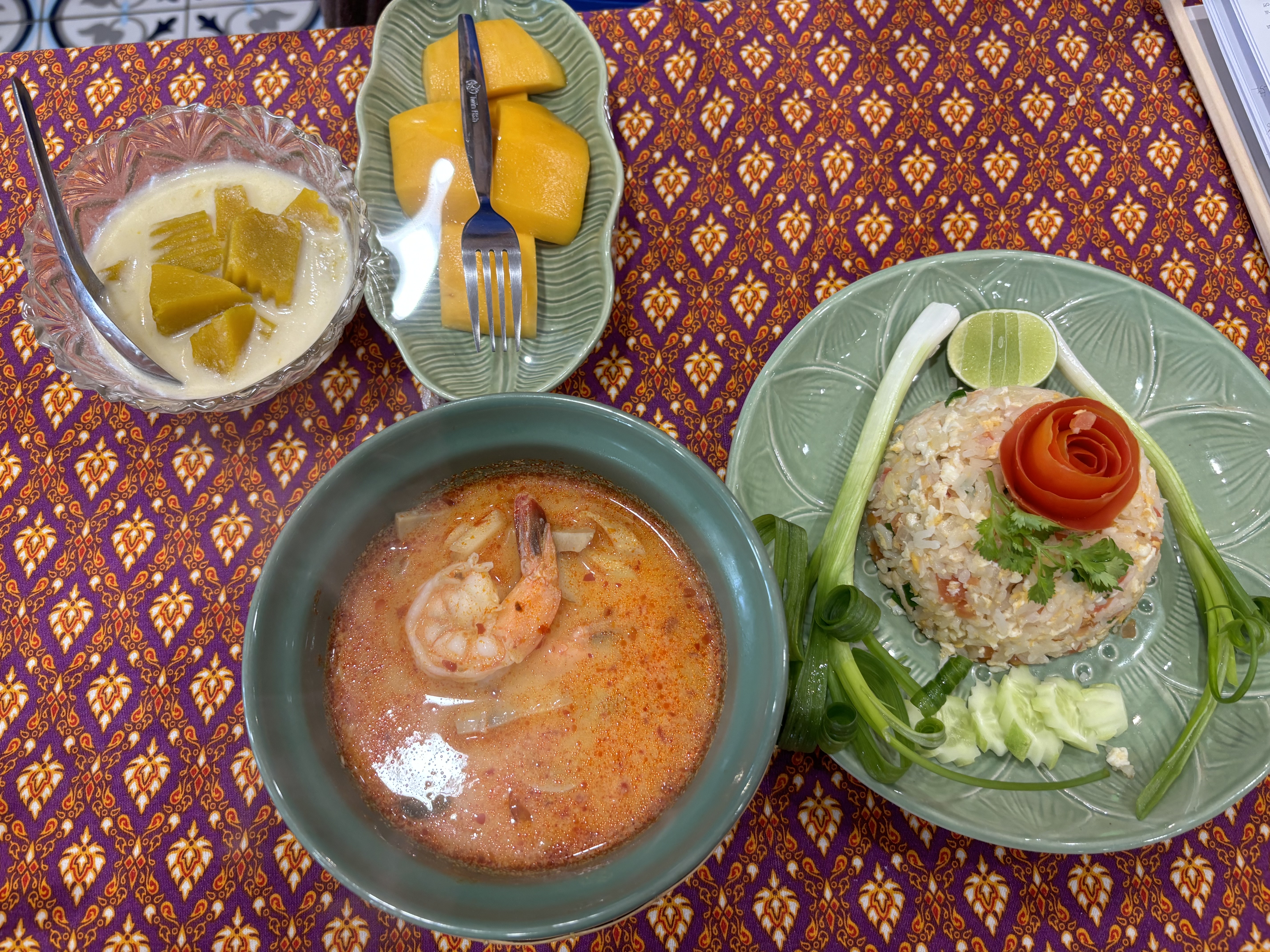 음식 : 똠냥꿍, 쏨땀, 볶음밥(카오팟), 망고 스티키 라이스 등~ (요일마다 달라짐, 홈페이지 참조)