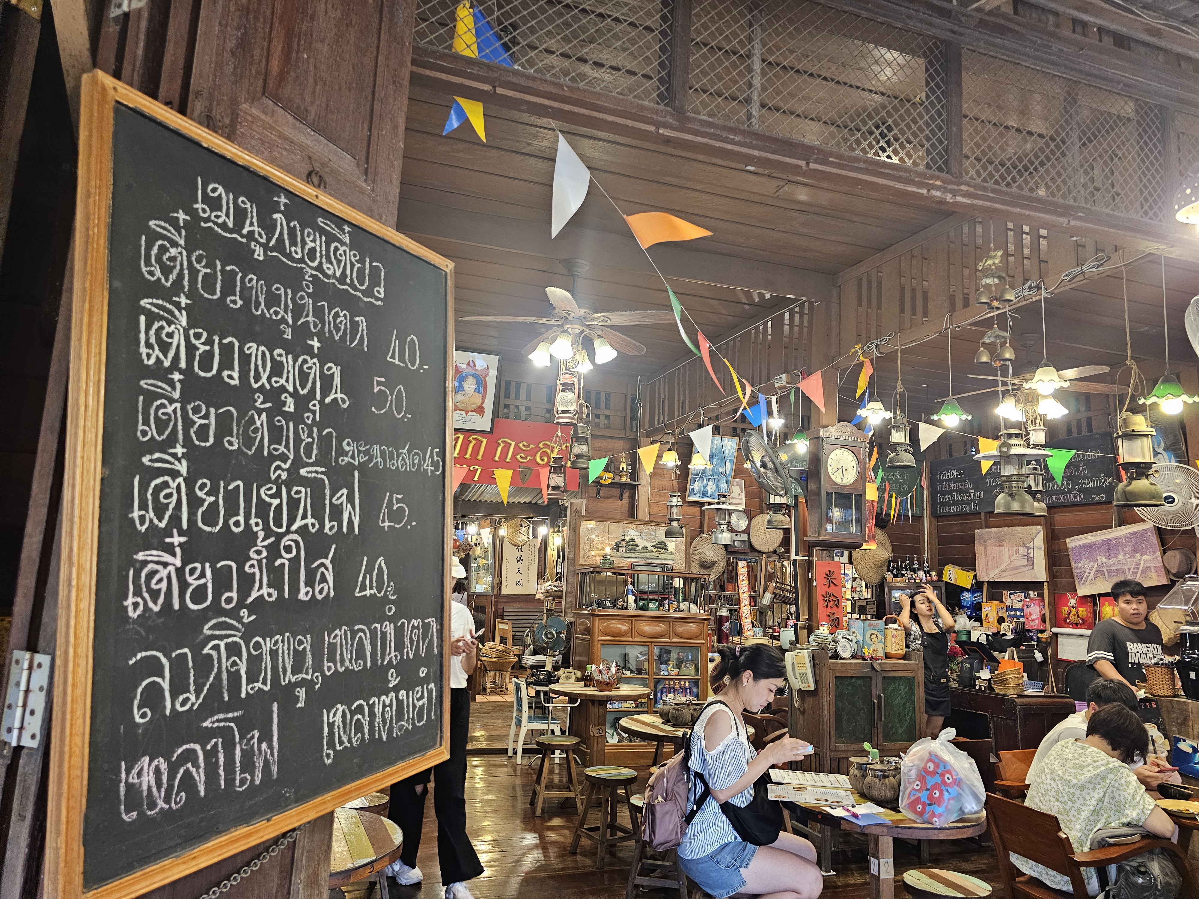 주말 시장은 입구는 뭐랄까, 집 앞 시장 느낌? 갑자기 인헌동 시장을 온 느낌입니다. 한국이랑 너무 비슷하네 이런 느낌이었고, 좀 안쪽으로 들어오면 사진과 같은 태국 느낌 나는 식당들이 있습니다.