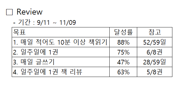회사를 다니며 적어도 10분은 어떻게든 매일 읽을 수 있을 거라 생각했지만, 이것마저 못 지켰다.