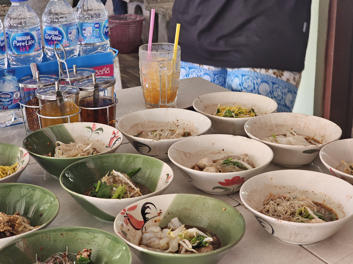 아유타야의 대표음식 꾸에이띠아오 르아입니다. 수로 중심으로 교통편이 발전했던 시절, 아유타야는 배에 국수를 많이 싫기위해 접시를 작게 만들고 저렴한 가격에 팔았습니다.