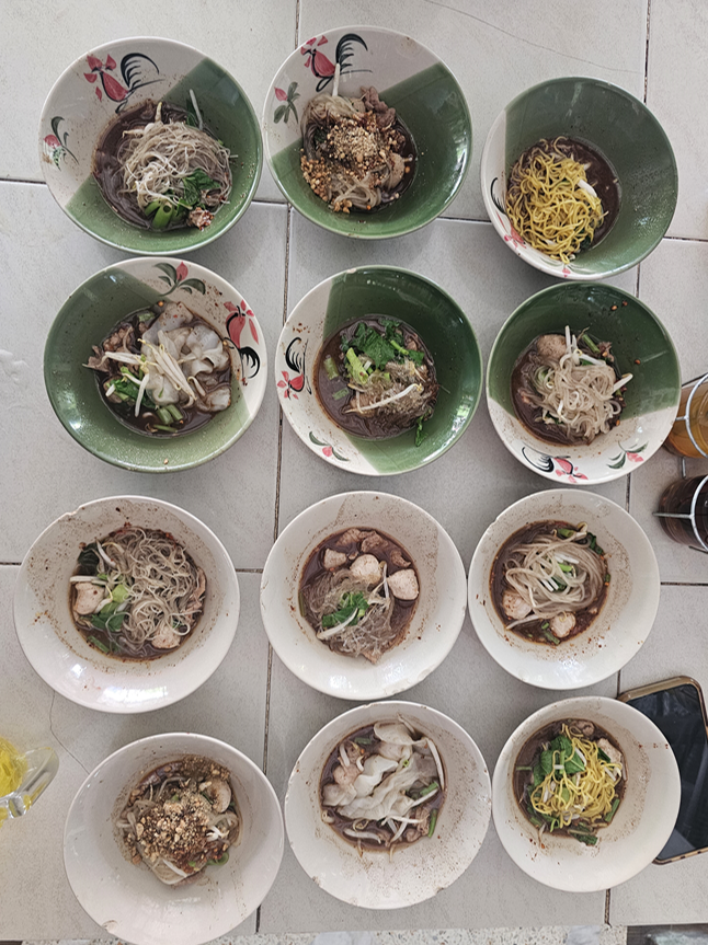 접시당 20바트이고, 돼지고기 국수인지, 소고기 국수인지, 어떤 면을 사용했는지에 따라 종류가 나뉩니다.