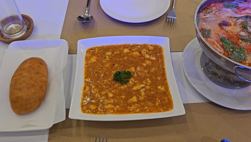 맛이 미쳤습니다. 시킨 음식은 뿌팟퐁커리 같이 생긴 커리와, 똠냥꿍, 게껍질 튀김입니다..