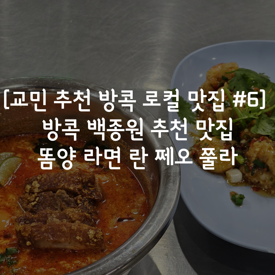 오늘은 백종원 선생님이 다녀갔던 똠양 라면 맛집 란 쩨오 쭐라에 갔다 왔습니다.