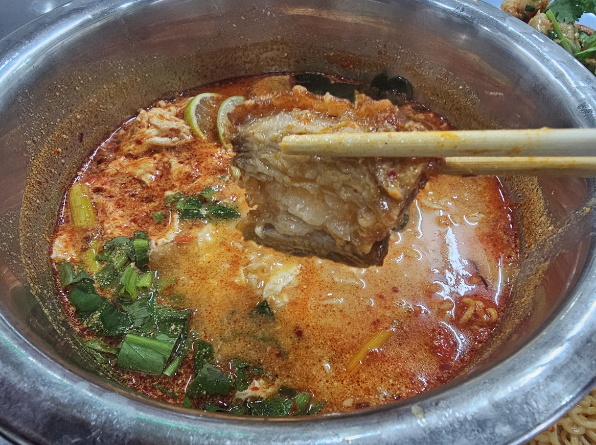 그냥 태국의 똠냥 라면에 돼지 고기 같은 재료들 넣고 끓인 맛이라,