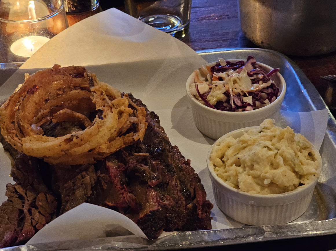 Beef Brisket Plate / Half Rack (폭립) / Pulled Pork Flautes 세가지 였습니다.